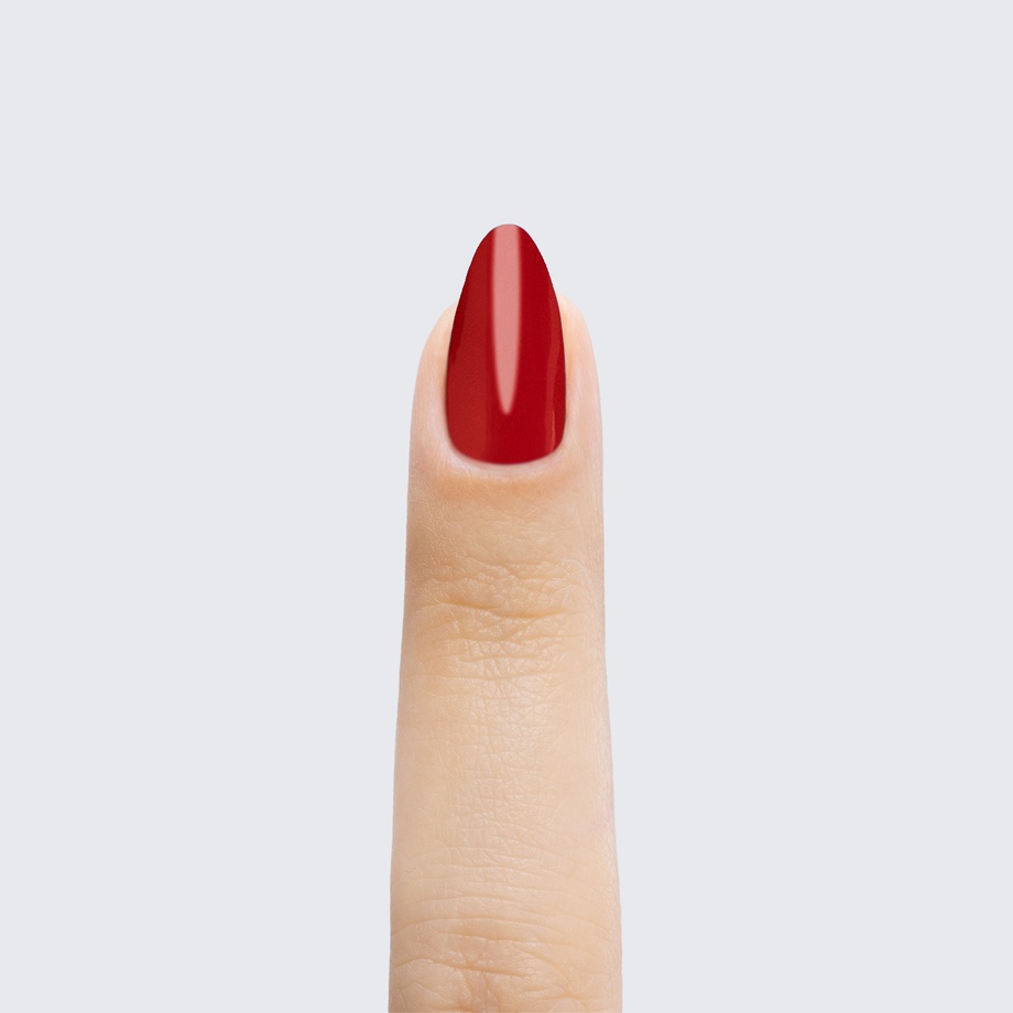 Strawberry red. “Classic”. Medium. Opaque. Cold undertone.